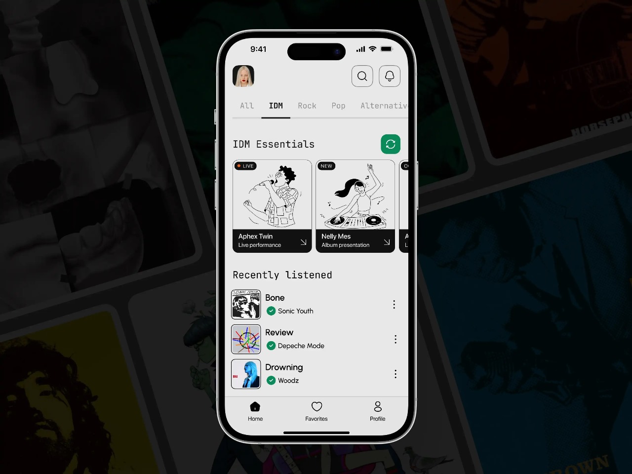 Home Screen: Dominating the main interface, the home screen showcases top-rated artists, offering users a curated selection of trending music. a refresh button provides the latest updates, ensuring you never miss new releases or popular hits.
