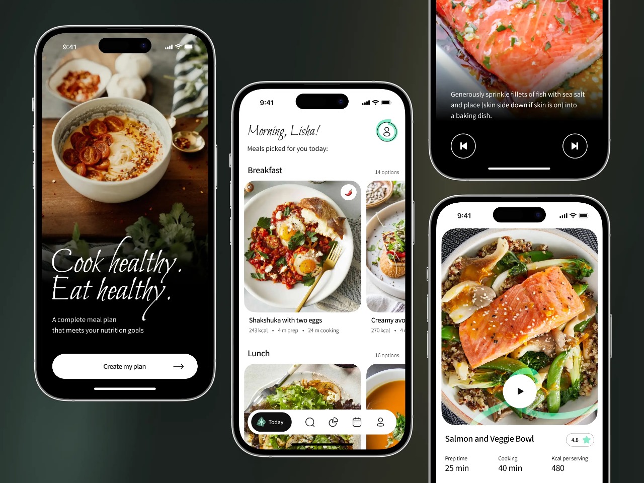 Our design team presents a design concept for a recipe app promoting healthy eating. in this food mobile app, users can set their calorie, macro, and micronutrient goals. the app suggests recipes for all meals and tracks progress toward weekly goals.